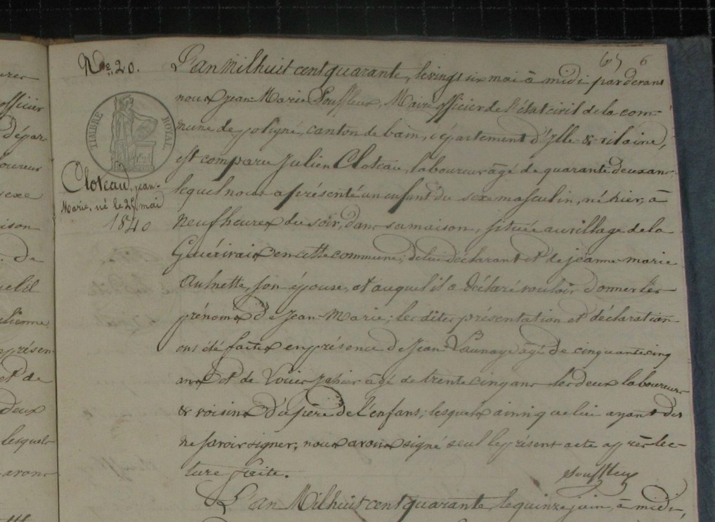 Père : CLOTEAU Jean François ( 1770 - 1820 )
