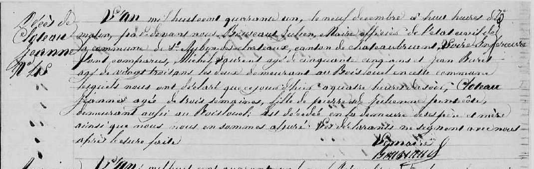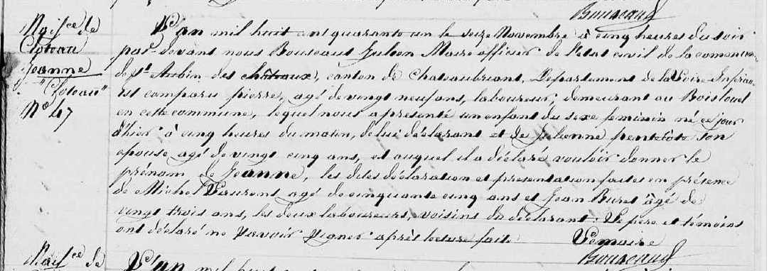 Décès : 8 décembre 1841 à Saint-Aubin-Des-Châteaux 44110