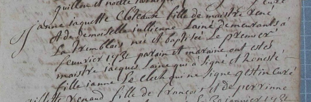 Père : CLOSTEAUX René ( ~ 1701 - 1743 )