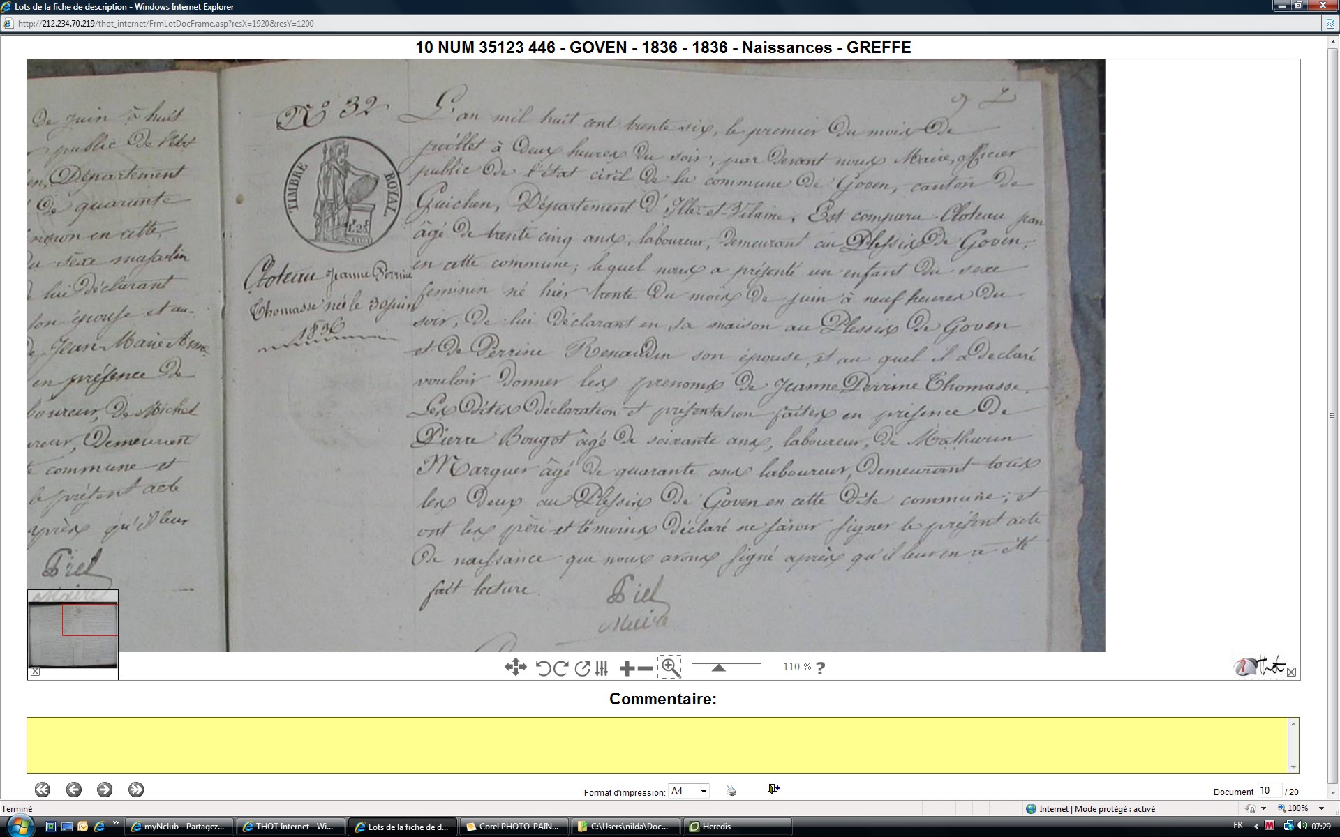 Naissance : 30 juin 1836 à Goven 35580 Plessix