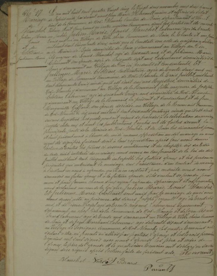 Mariage : 22 novembre 1885 à La Noë-Blanche 35470