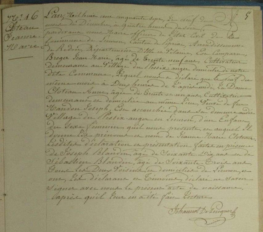 Père : CLOTTEAU Jean ( 1802 - 1874 )