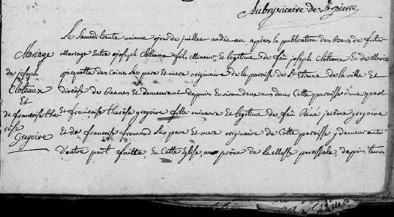 Père : CLOTEAU Julien ( ~ 1684 - <> 1769 & 1771 )