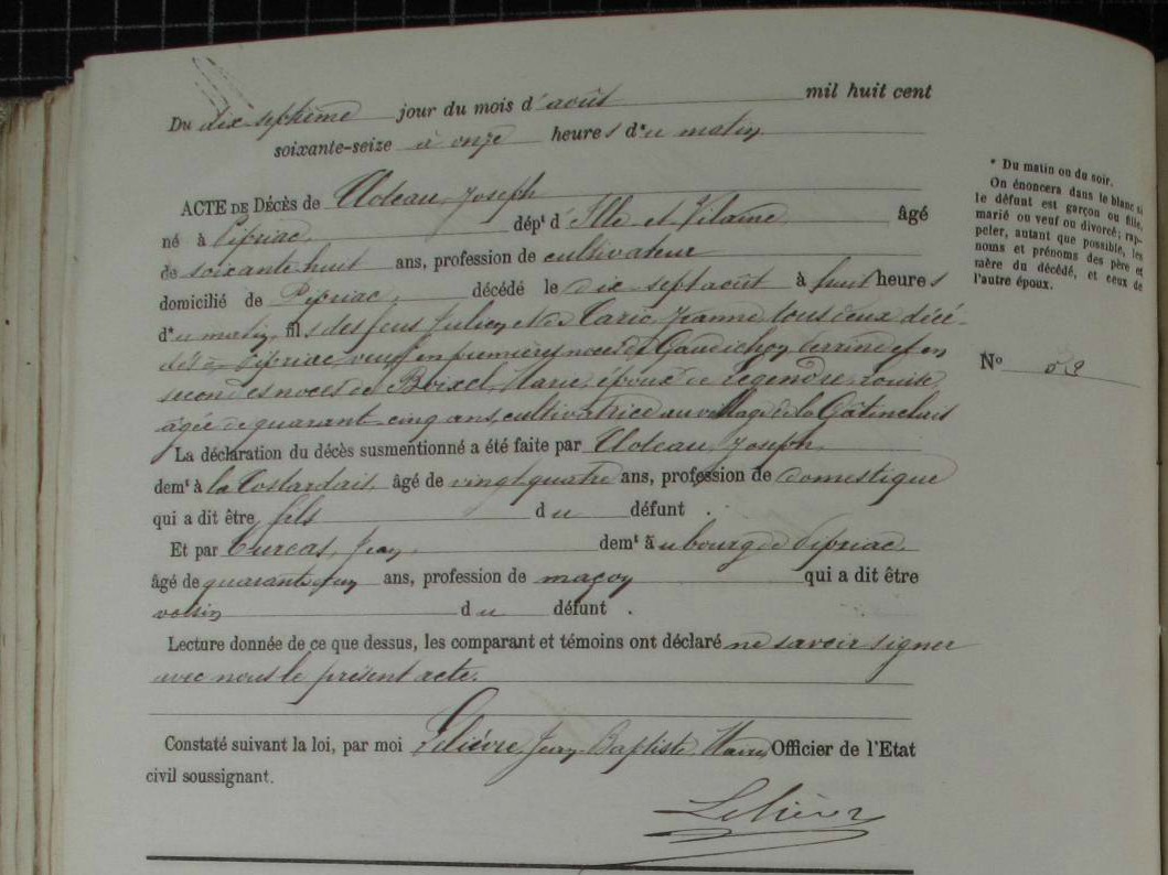 Naissance : 26 juillet 1807 à Pipriac 35550