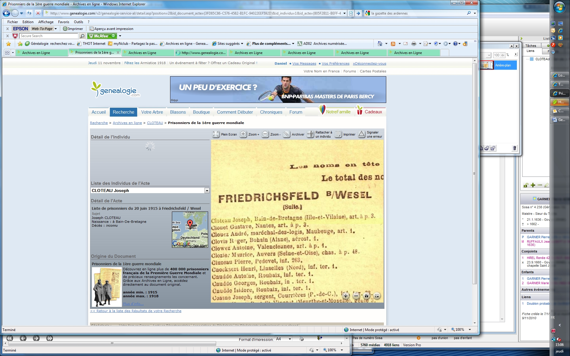 Naissance : avant 1900 à Bain-De-Bretagne 35470 Prisonnier de Guerre 14-18 : 20 juin 1915 à Friedrichsfeld / Wesel