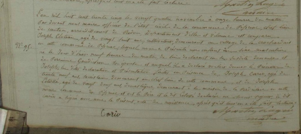 Naissance : 24 novembre 1835 à Pipriac 35550