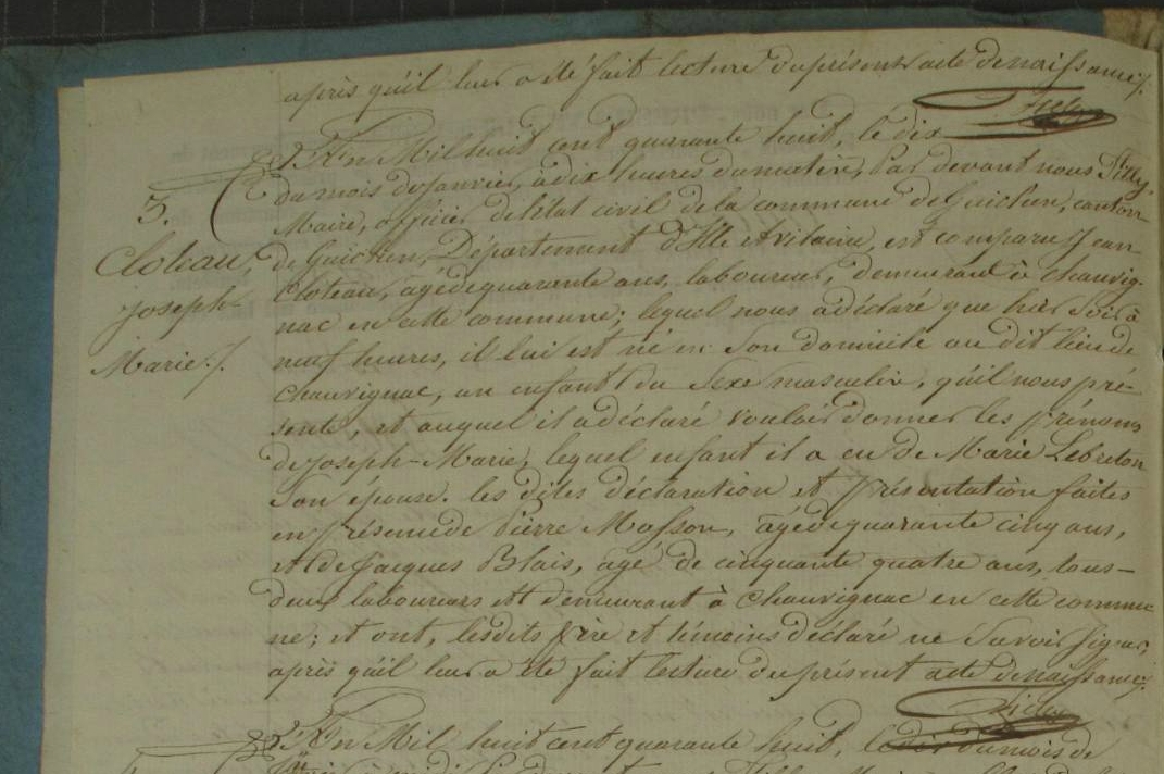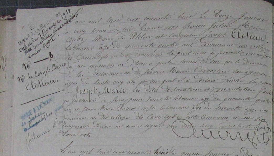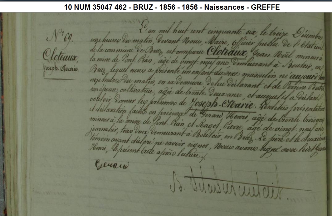 Père : CLOTEAUX Jean ( 1807 - > 1858 )