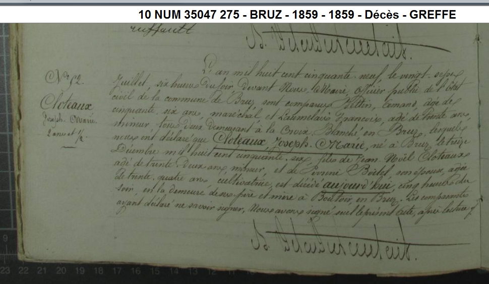 Décès : 27 juillet 1859 à Bruz 35170