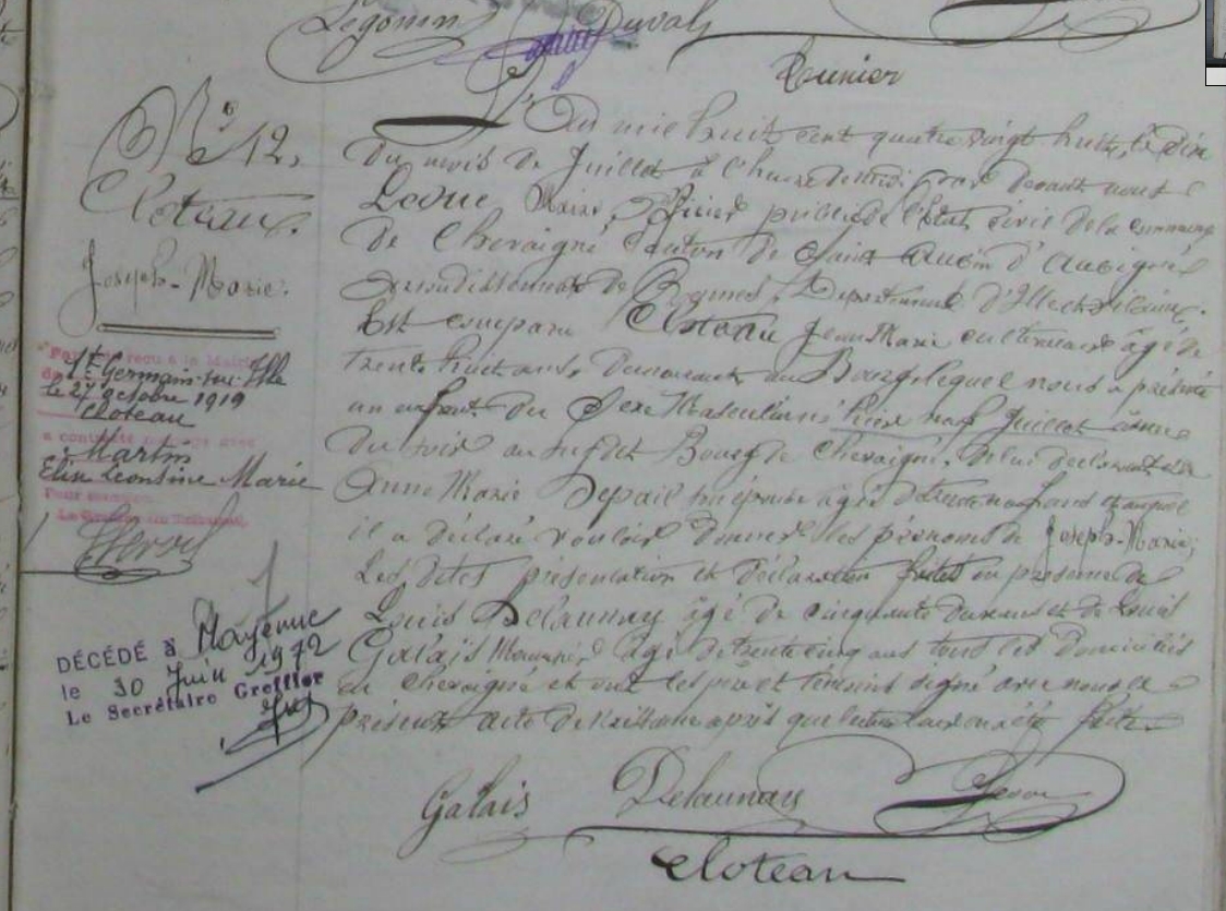 Père : CLOTEAU Joseph ( 1807 - 1876 )