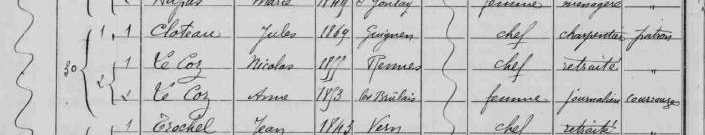 CLOTTEAUX Julienne 7 fevrier 1831?Domicile : 1906 à Rennes 35000 23 rue saint Georges