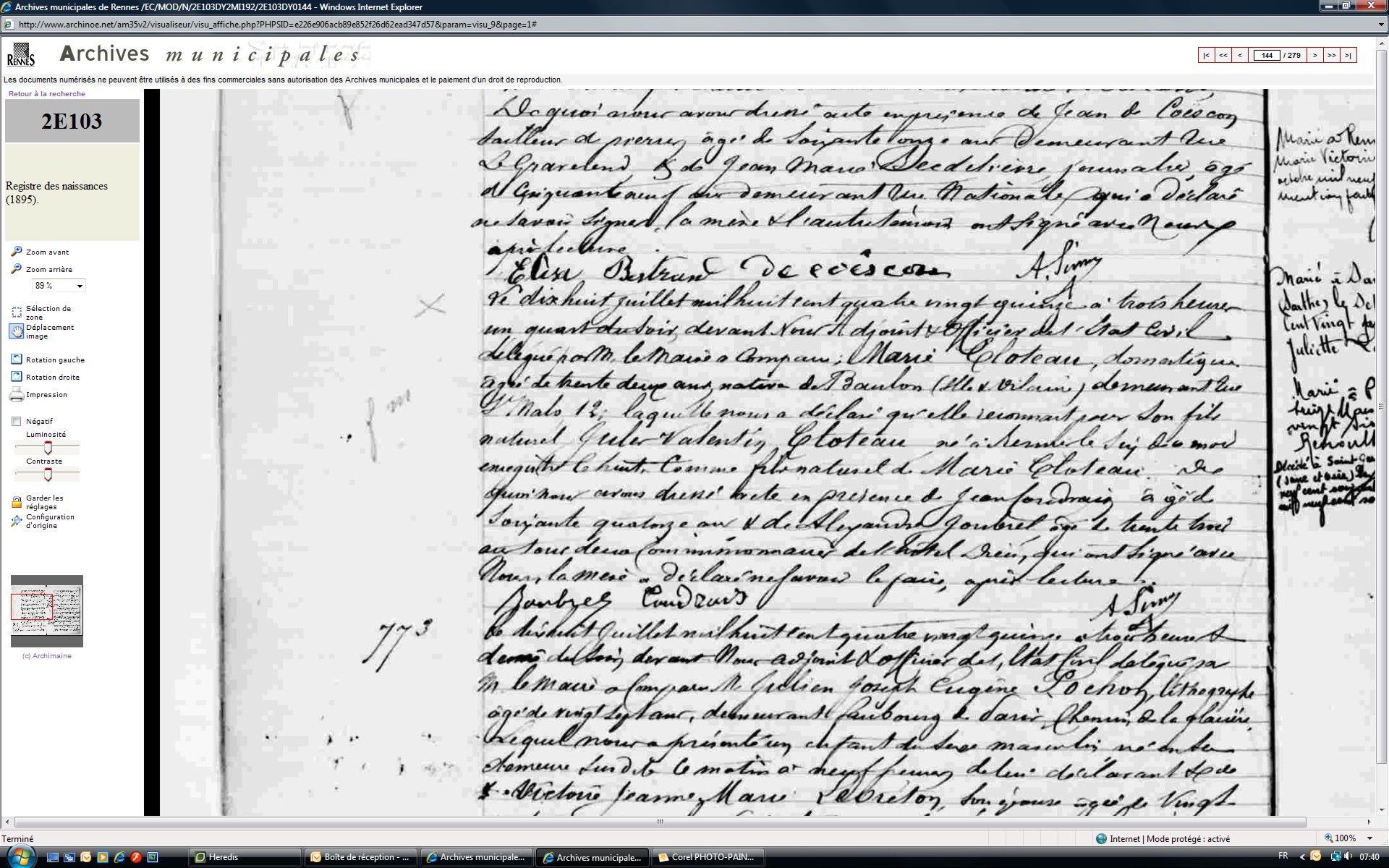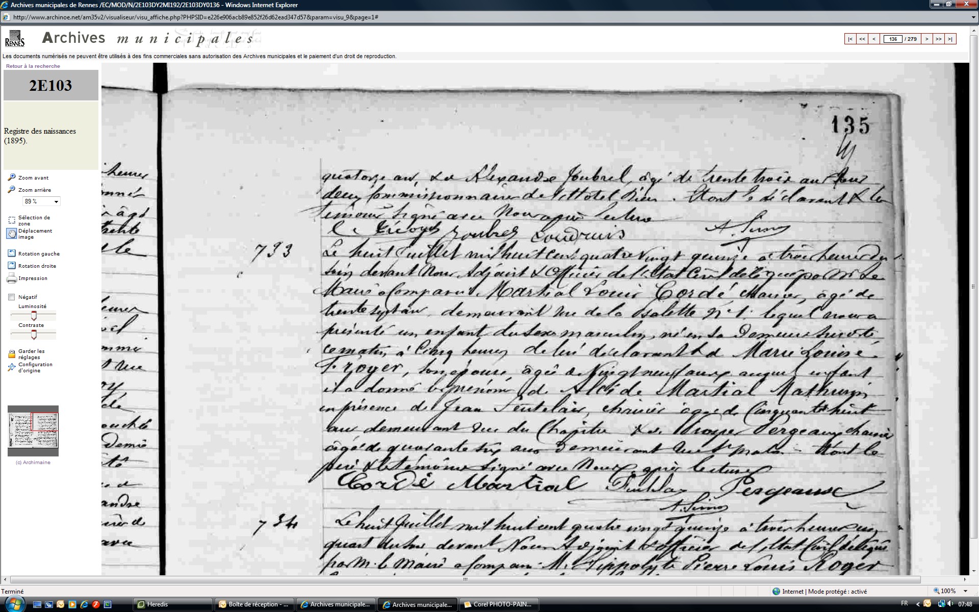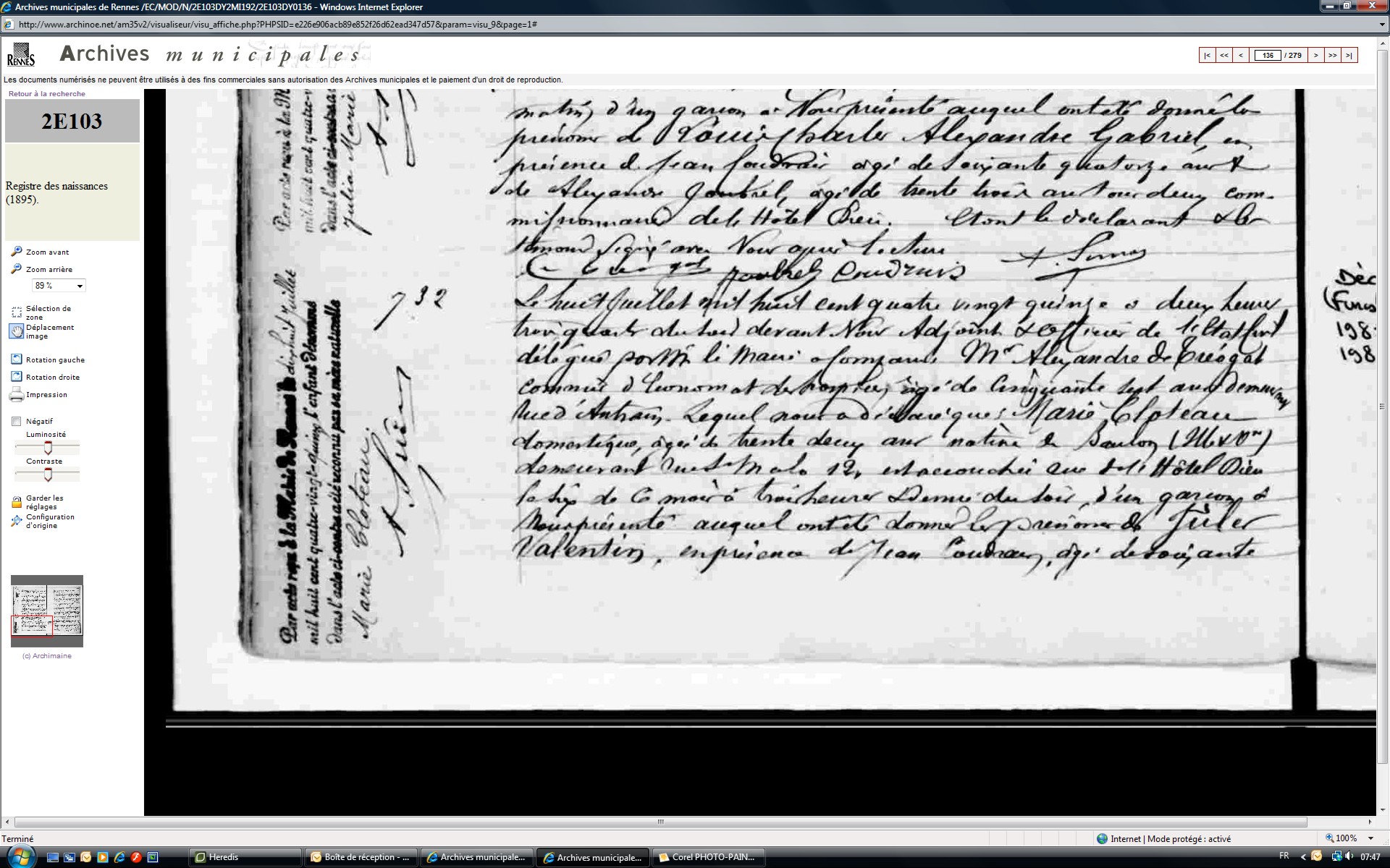 Reconnaissance : vers 18 juillet 1895 à Rennes 35000