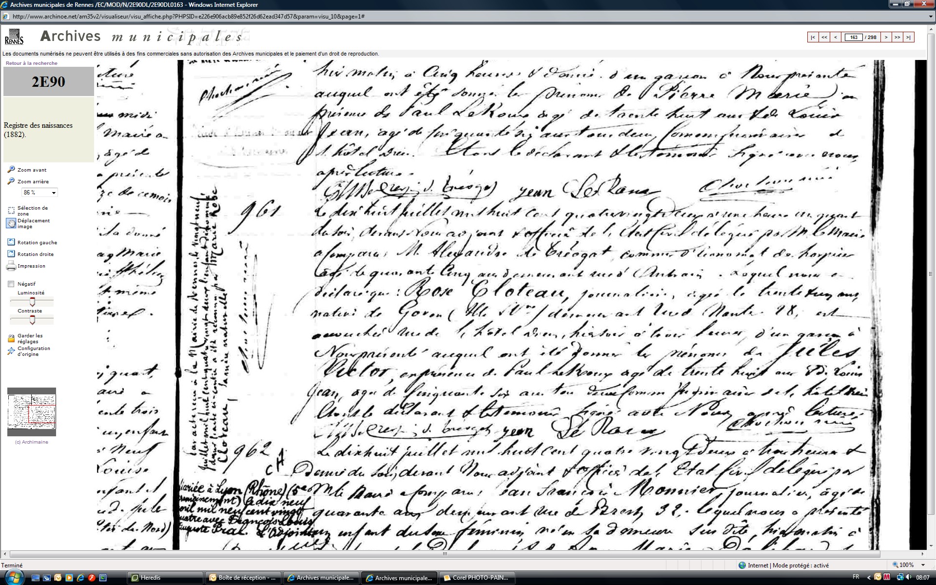 Reconnaissance : 29 juillet 1882 à Rennes 35000
