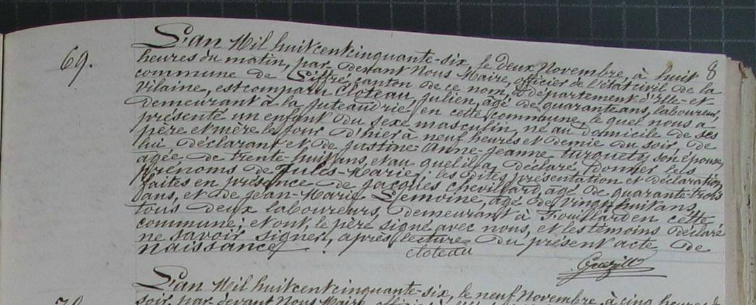 Autre enfant : CLOTEAU Jean Marie ( 1873 - 1875 )