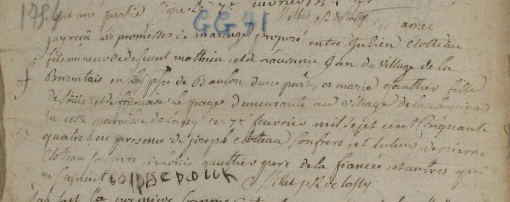 Promesse de mariage : 7 février 1754 à Lassy 35580