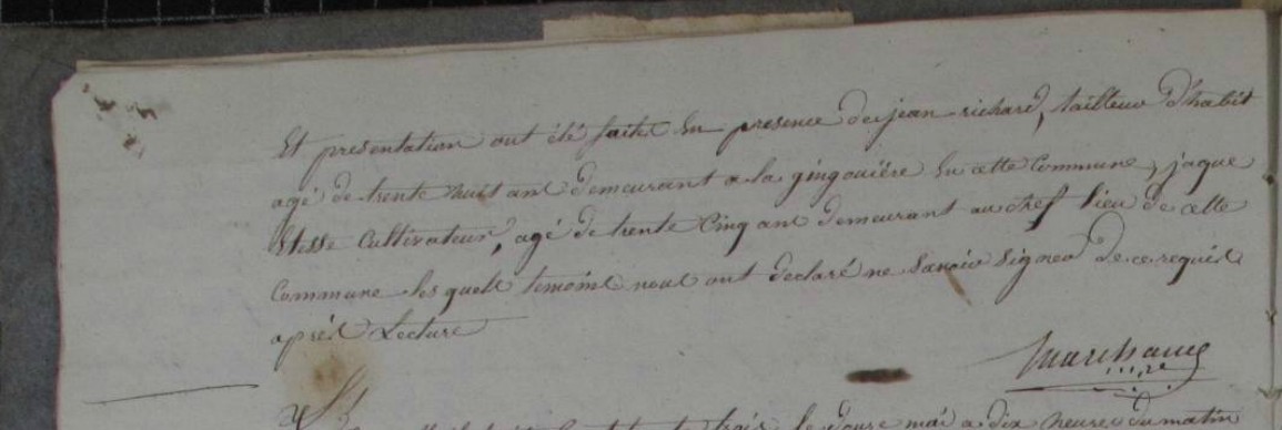 Officiant : Lebastard de Villeneuve (maire)Décès : 30 juillet 1817 à Guignen 35580 Verger