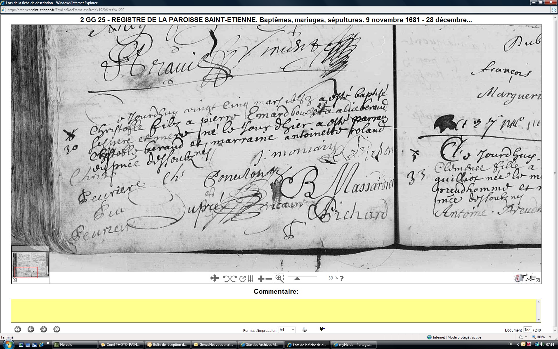 Mariage : 17 mars 1682 à Saint-Étienne 42100