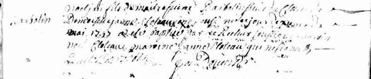 Enfant : BARBOTIN Noël Jean ( 1747 - ? )