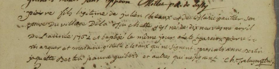 Père : CLOTEAU Julien ( < 1734 - > 1774 )