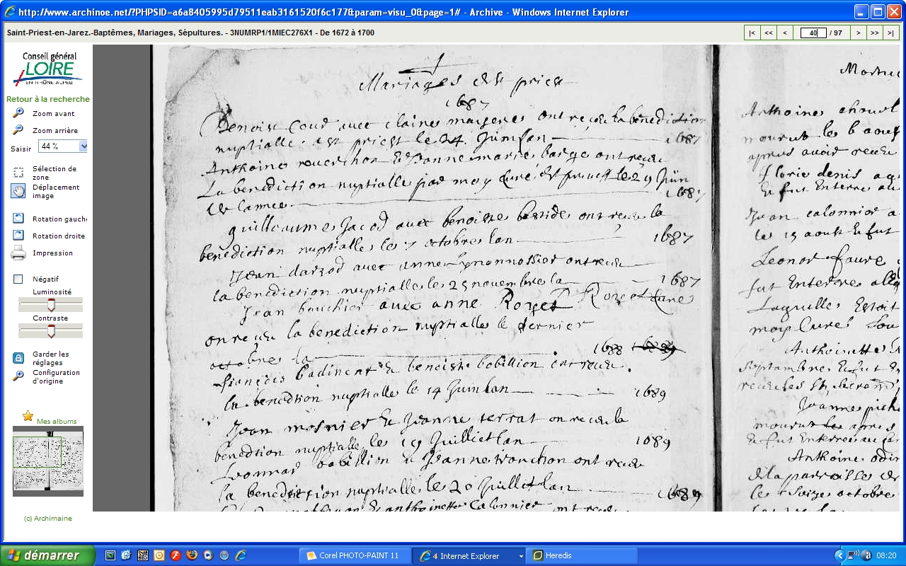 Mariage : 29 juin 1687 à Saint-Priest-En-Jarez 42270