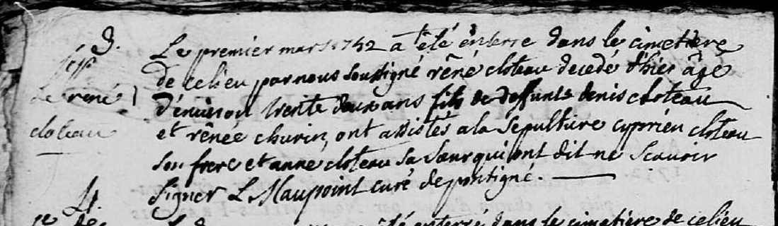 Père : CLOTEAU René ( 1695 - <> 1730 & 1764 )