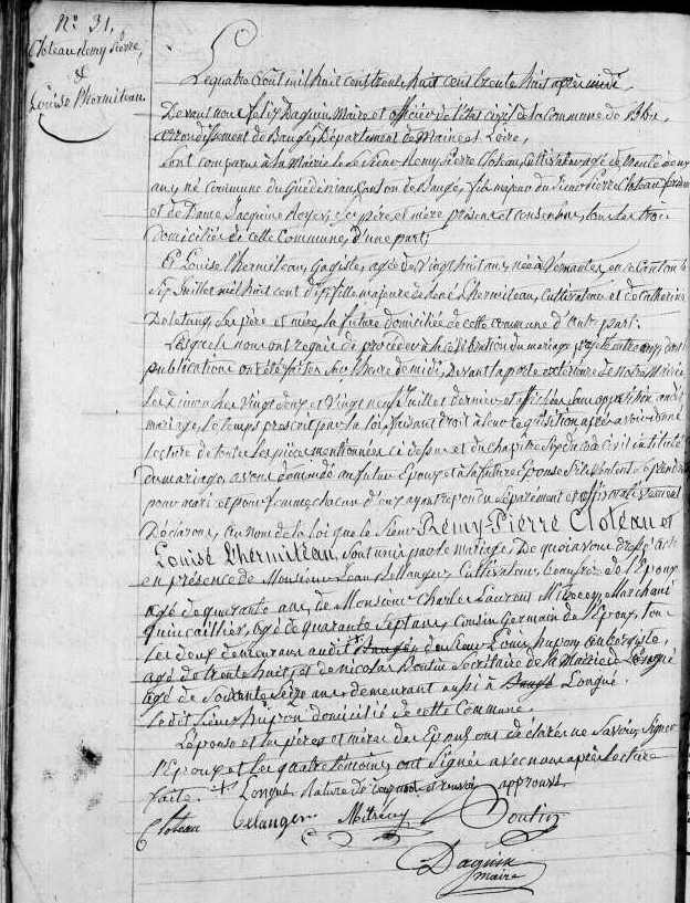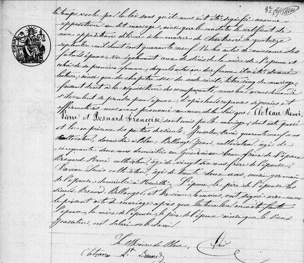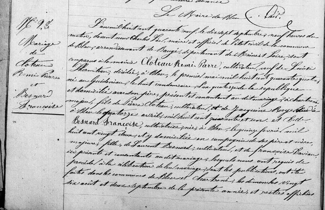 Père : CLOTEAU Pierre ( 1768 - > 1849 )