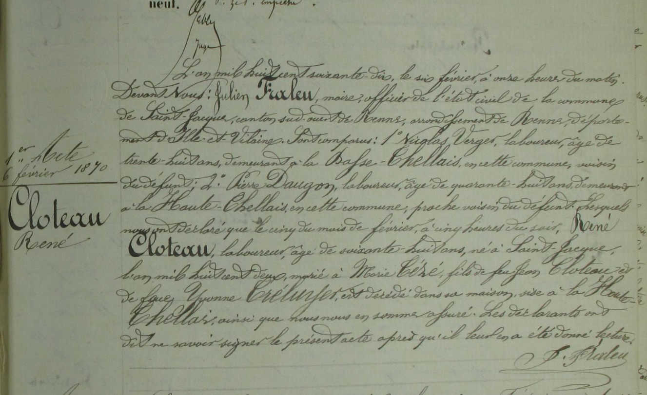 CLOTEAU en margeDécès : 7 août 1697 à Lasse 49490