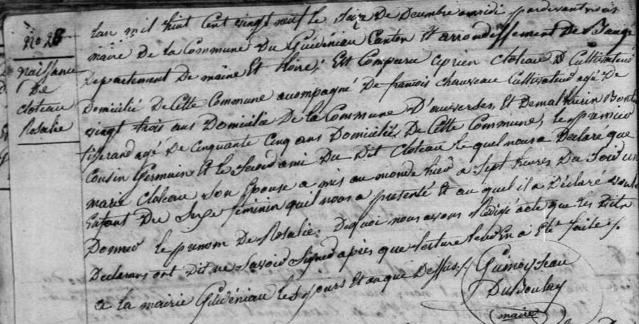 Père : CLOTREAU Louis ( 1772 - 1844 )