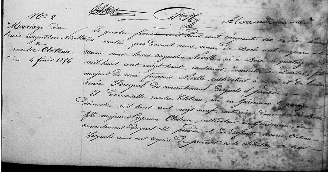 Mariage : 4 février 1856 à Bocé 49150