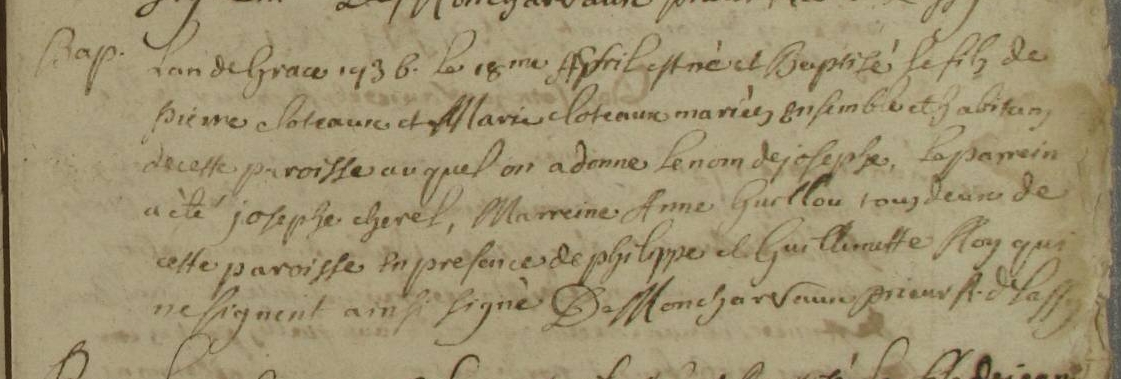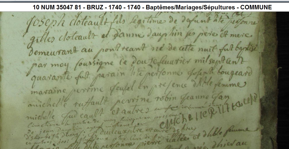 Père : CLOTEAULT Pierre ( 1696 - > 1730 )