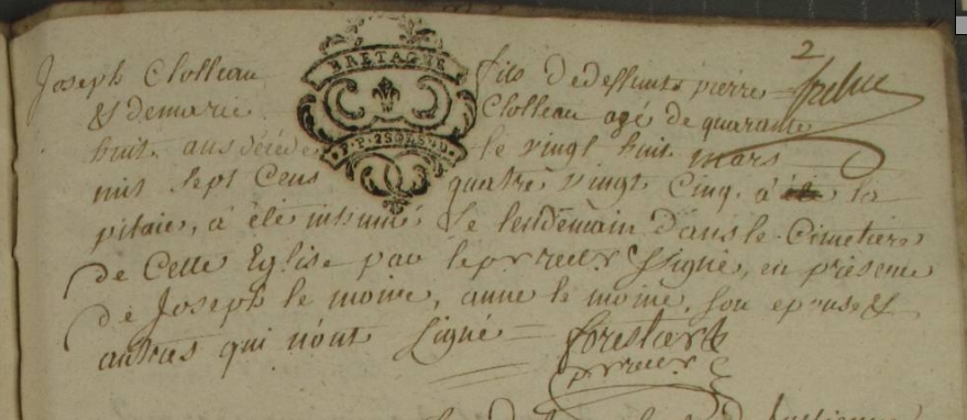 Décès : 28 mars 1785 à Lassy 35580 La Pitais