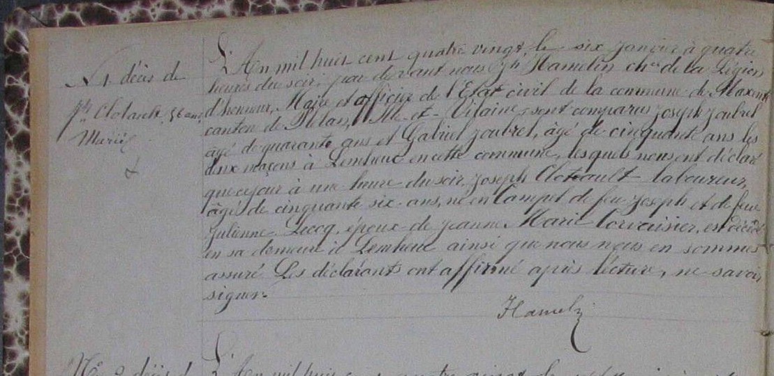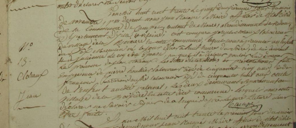 ou CLOTEAUX à son mariageDécès : 24 brumaire an VI à Lassy 35580