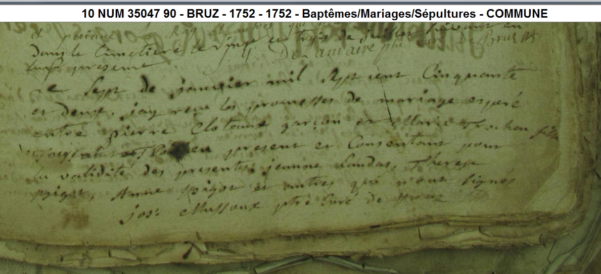 Promesse de mariage : 7 janvier 1752 à Bruz 35170