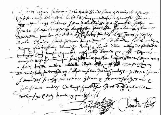il signe Cloteaulx(fleur)Bénédiction : 26 février 1634 à Rennes 35000 Saint Germain