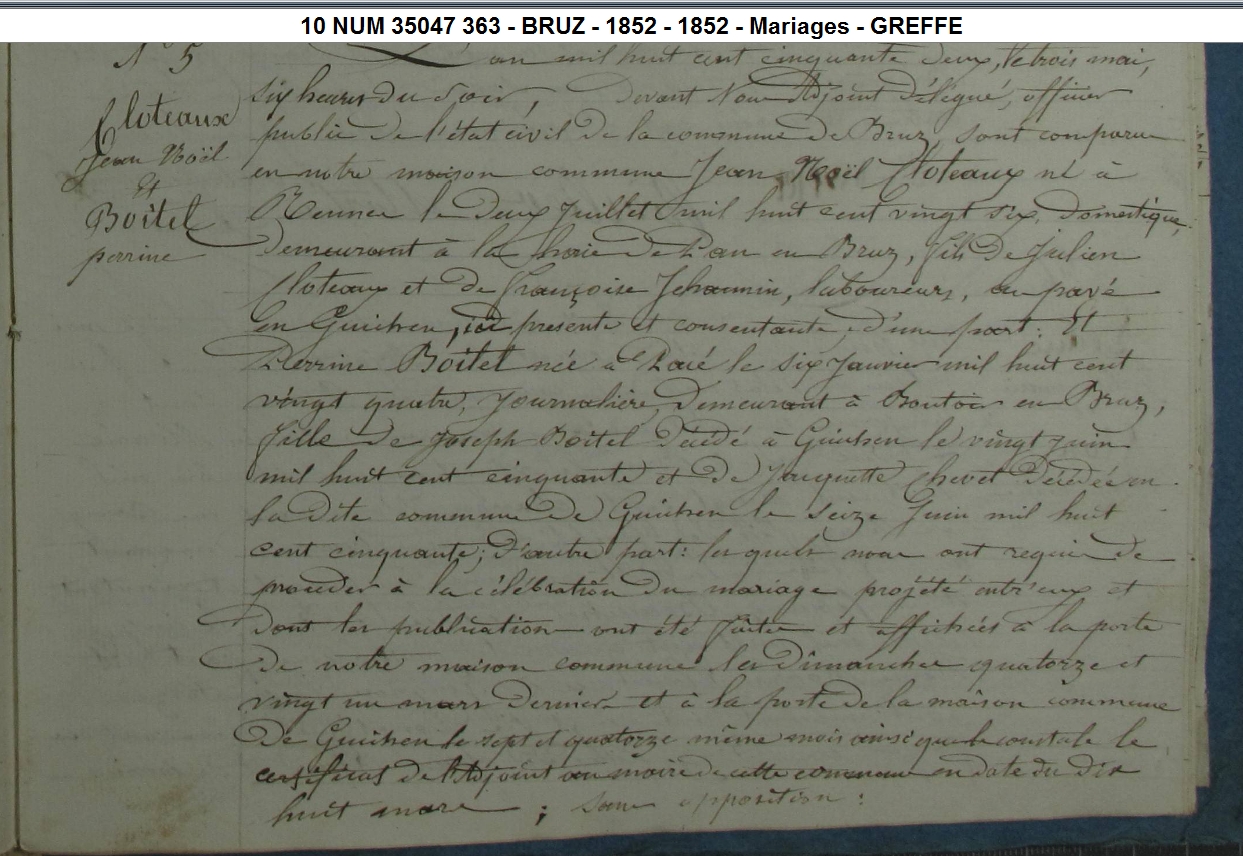 Témoins :CLOTEAU Julien Marie ( 1793 - 1858 )