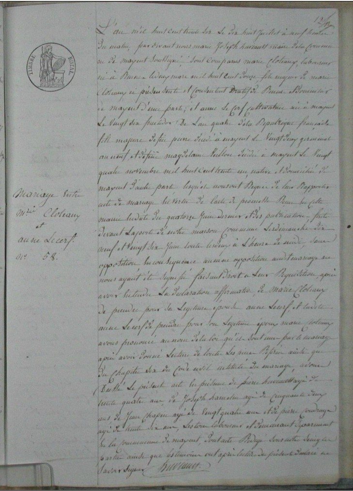 CLOTEAUX Marie à son mariage avec LECERF Anne en 1836