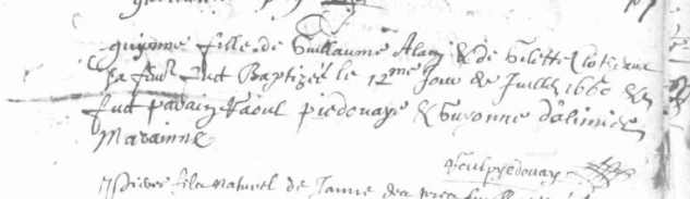 Père : ALLAIN Guillaume ( < 1644 - > 1672 )
