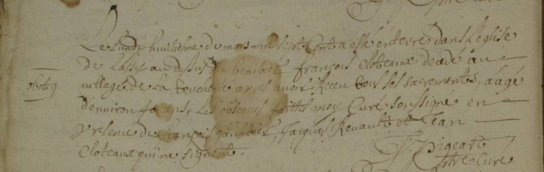 Décès : 8 mars 1700 à Lassy 35580 Village de la touchette