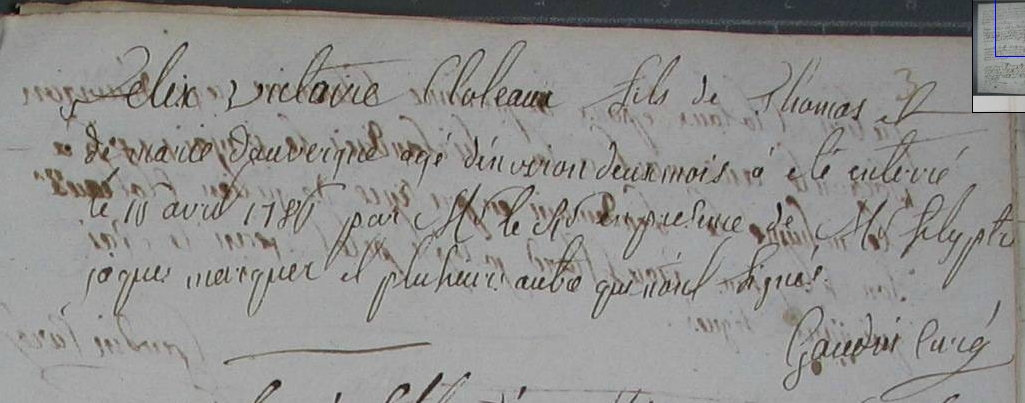 Père : CLOTEAUX Joseph ( 1719 - <> 1768 & 1789 )