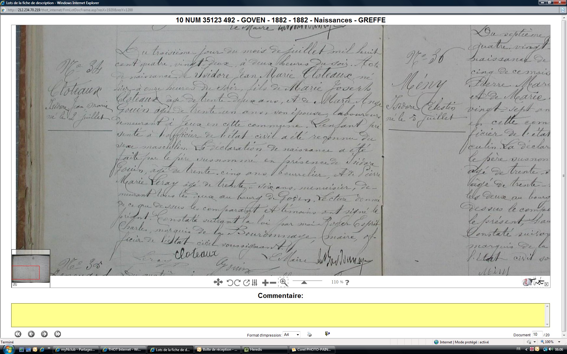 Père : CLOTEAUX Isidore Jean Marie ( 1857 - > 1892 )