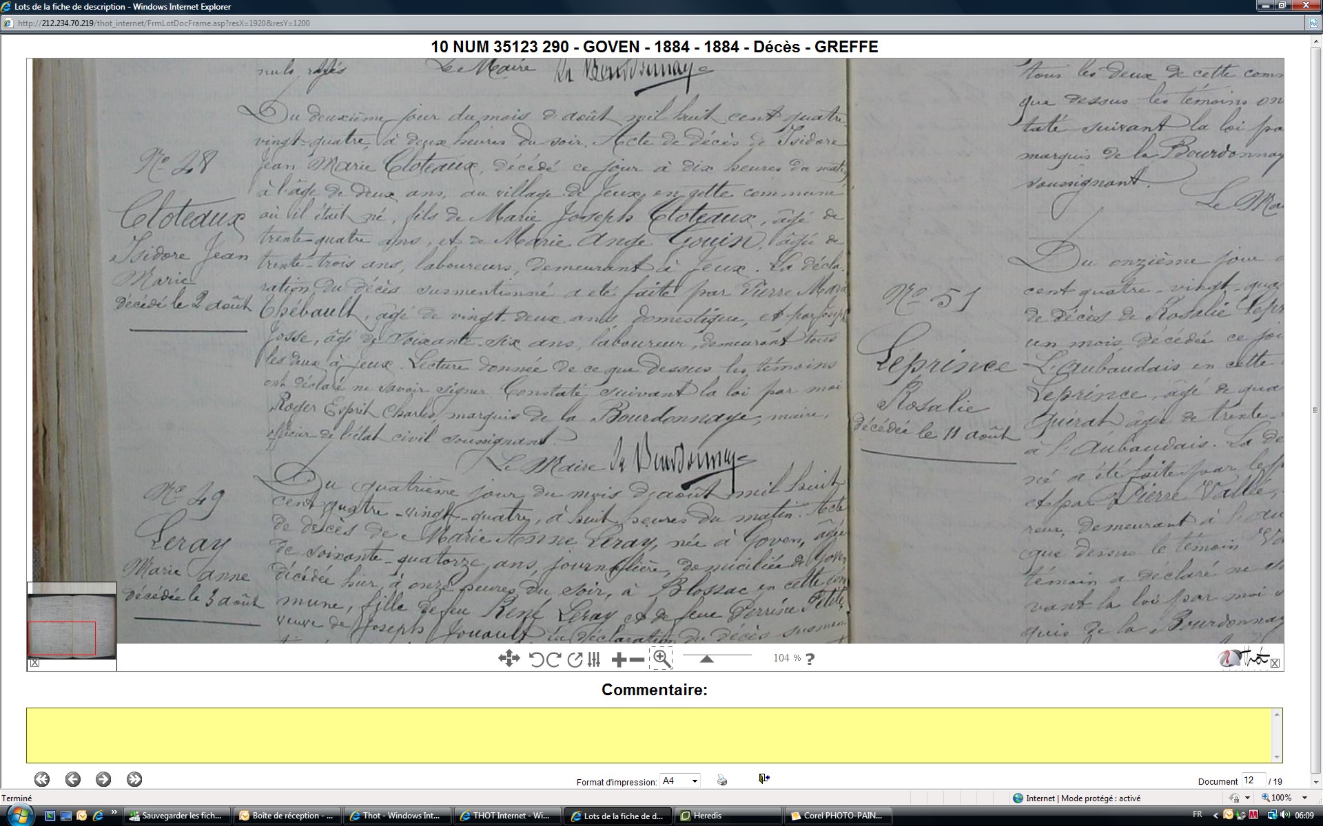 Mère : CLOTEAUX Marie Rose ( (c) 1856 - > 1887 )