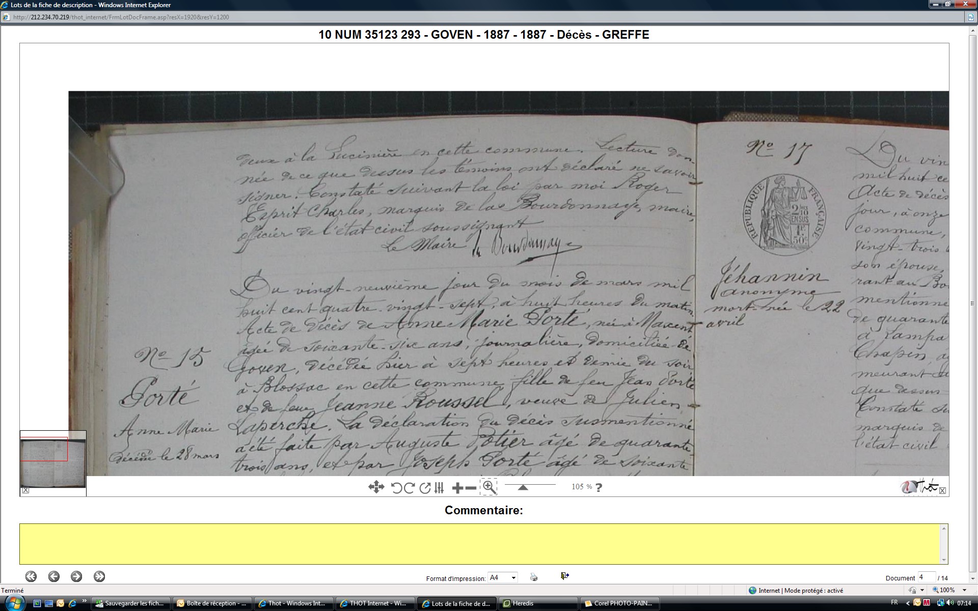 Décès : 17 mars 1887 à Goven 35580 Lucinière
