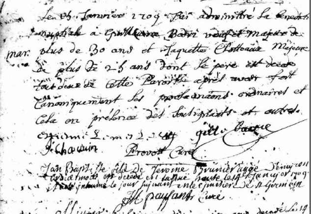 Mariage : 25 janvier 1709 à Rennes 35000 Saint Germain