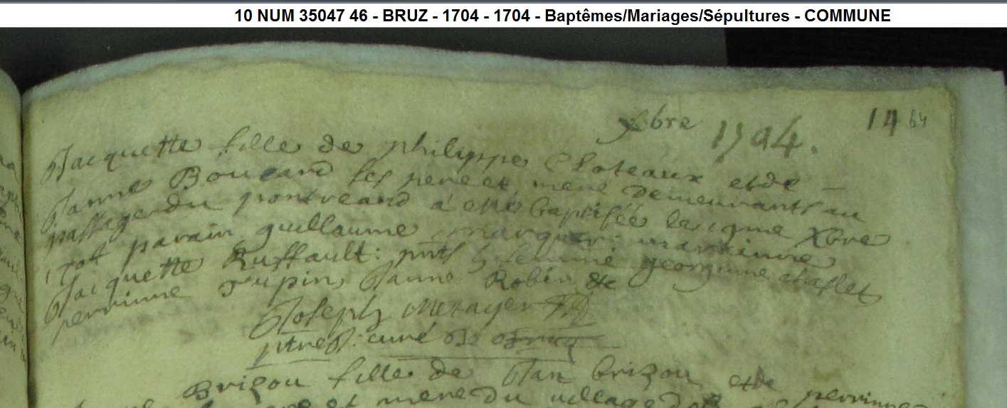 Nom et prénom de la marraine Cloteaux Jacquette