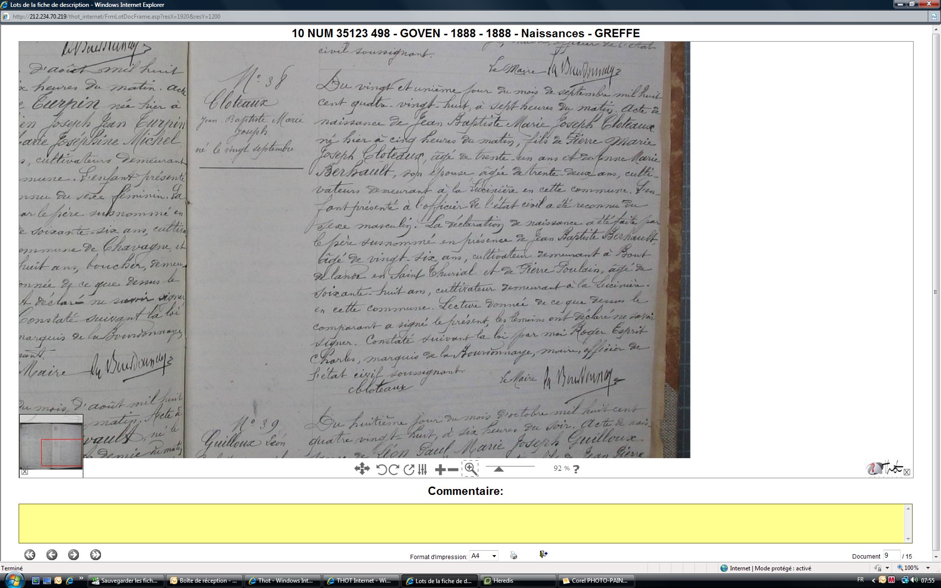 Présents : CLOTEAUX Jean Baptiste, 38 ans
