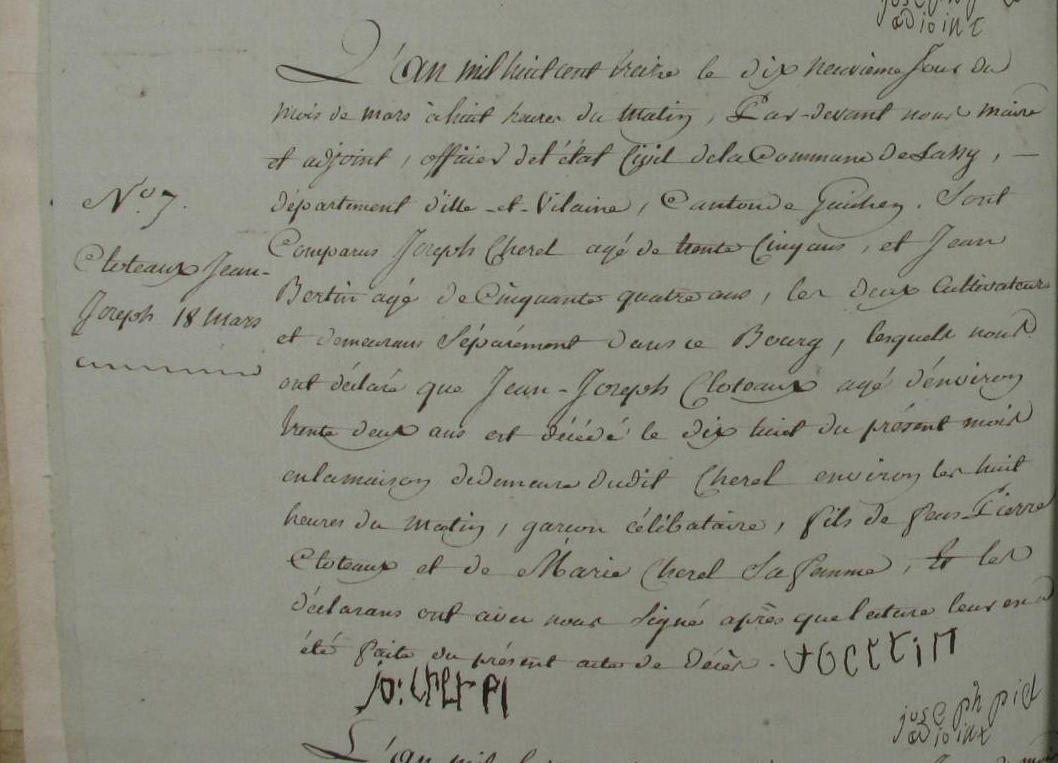 Décès : 30 août 1875 à Mernel 35330 Triouby