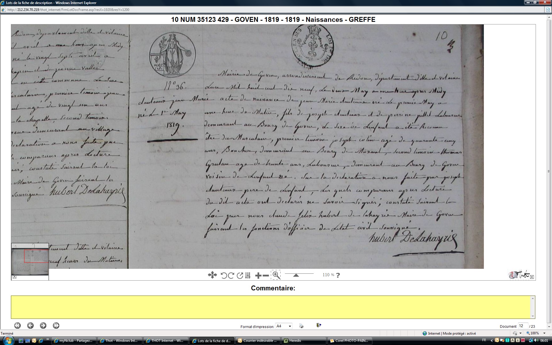 Naissance : 1er mai 1819 à Goven 35580 Bourg