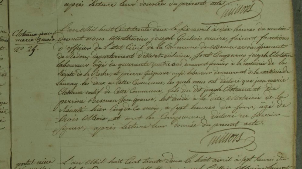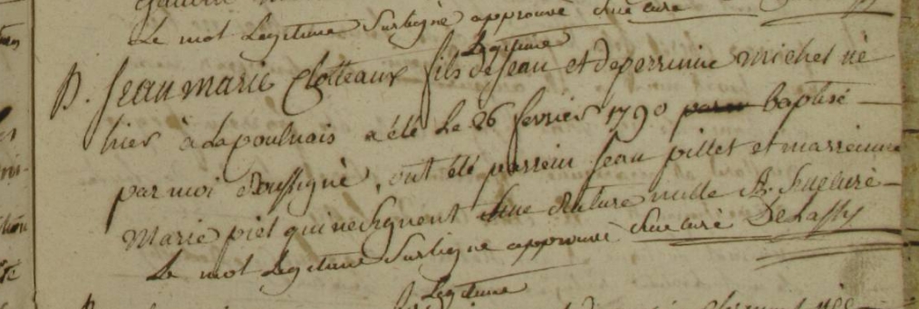 Je souhaite vous faire part d'une remarque concernant Jean Louis CLOTEAUX, sur votre arbre :