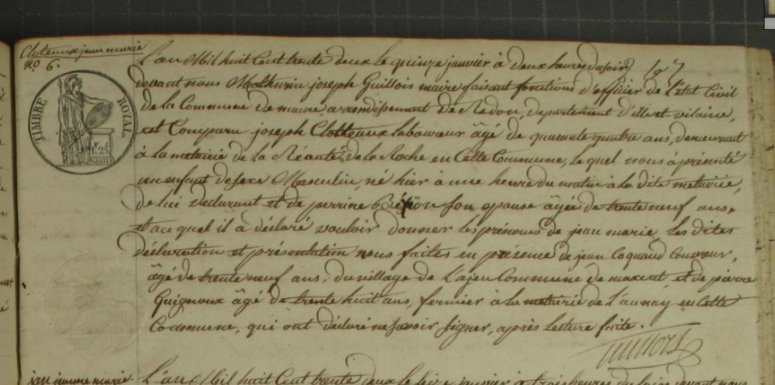 Naissance : 26 février 1790 à Lassy 35580 La Poulnais
