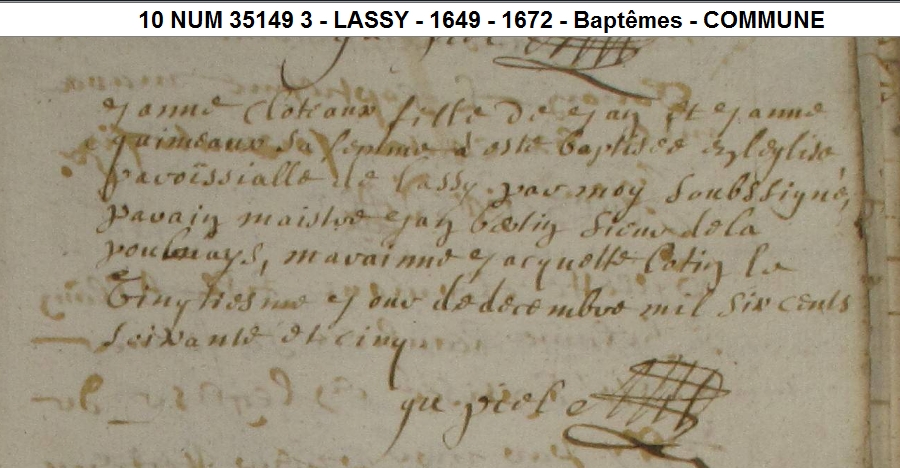 Naissance : 20 décembre 1665 à Lassy 35580