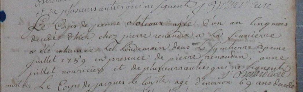 Nom et prénom de la marraine Cloteaux JanneDécès : après 1769